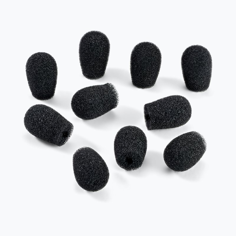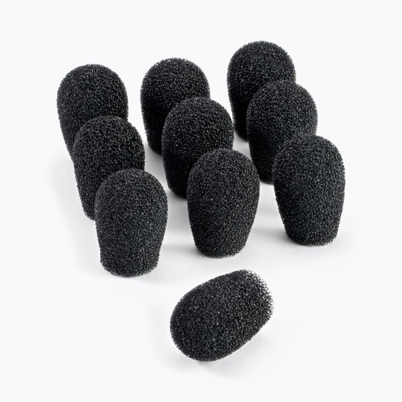 Our ASWS20B10 Windscreens for Headset Mics reduce wind, breath, and plosive noises to improve sound quality. The flexible foam provides a snug hold that prevents slipping and completely covers the mic, shielding it from dust, debris, and moisture. This pack includes 10 black windscreens that stretch to fit popular headset mic brands including DPA, Countryman, and Point Source.