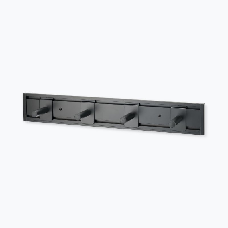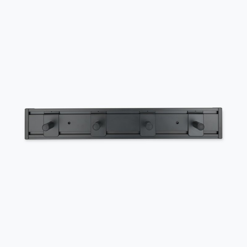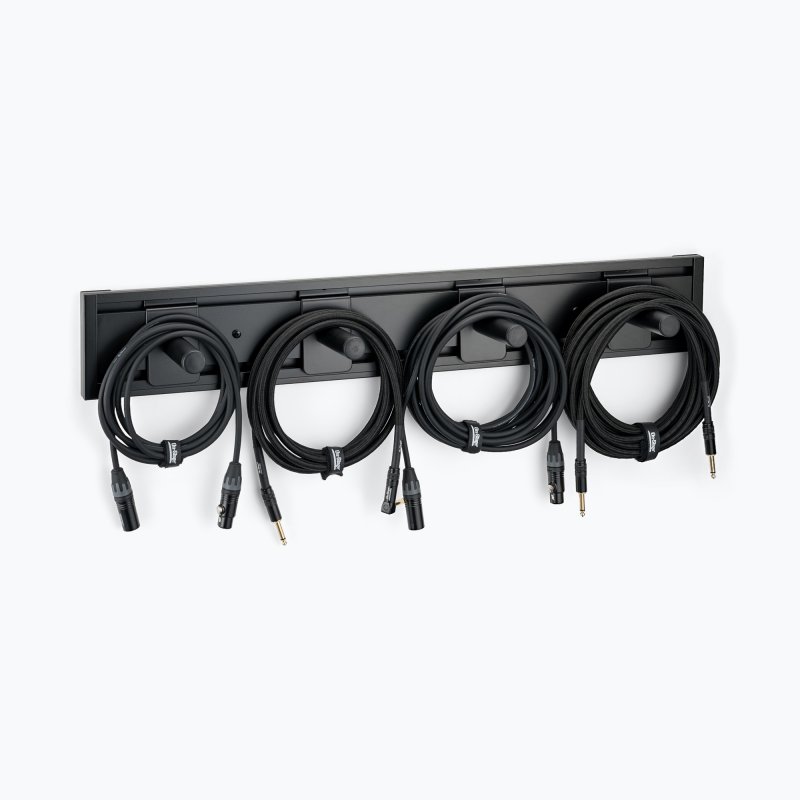 Four hooks keep frequently used cables and other accessories easily visible and accessible