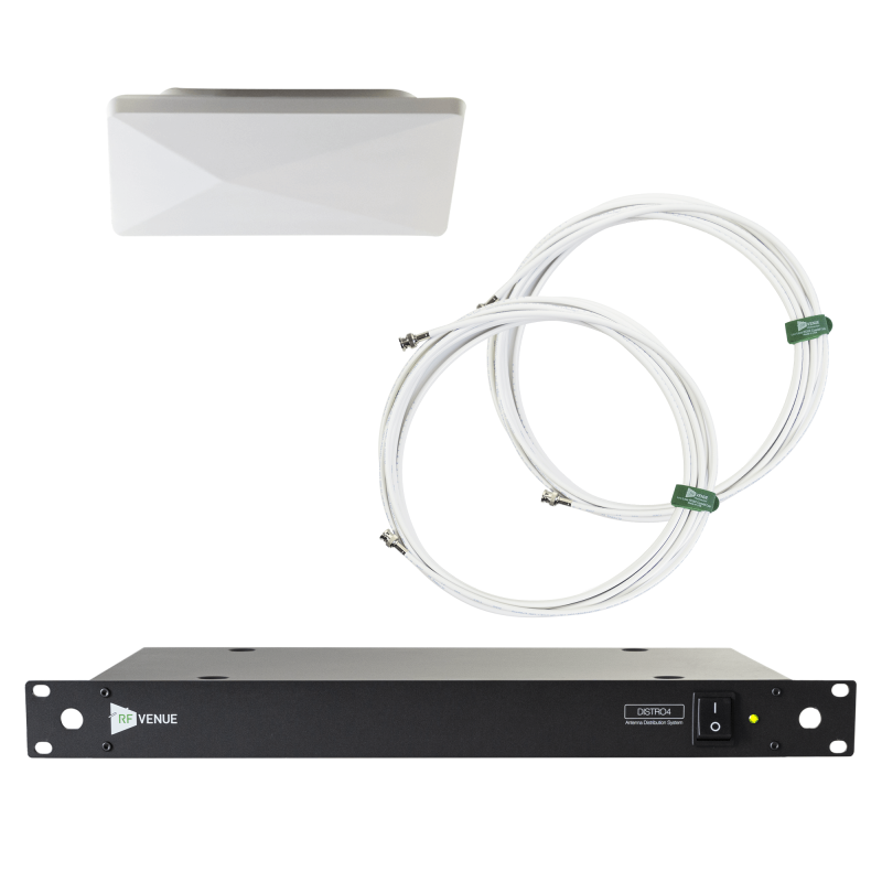 To utilize directional antennas with more than two receivers, an antenna distributor is the right tool for the job. With a single Diversity Fin and DISTRO4, you can avoid crosstalk bleed from multiple whip antennas, and remove questionable wall warts and unneeded powerstrips that can cause other avoidable issues.