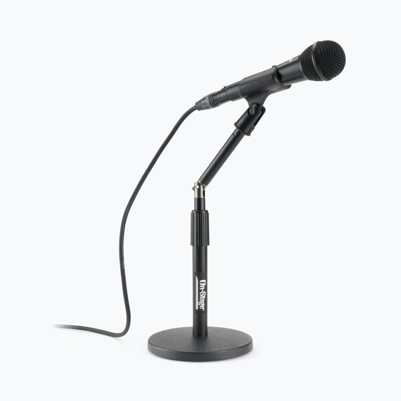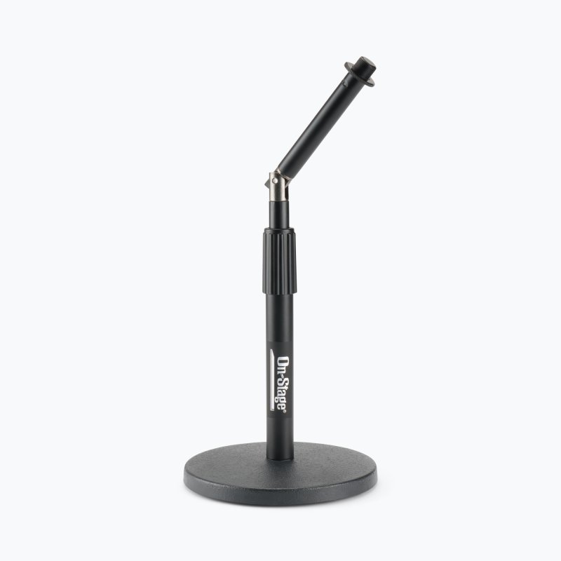 Compact stand for short-height miking and unobtrusive use on a desktop or podium