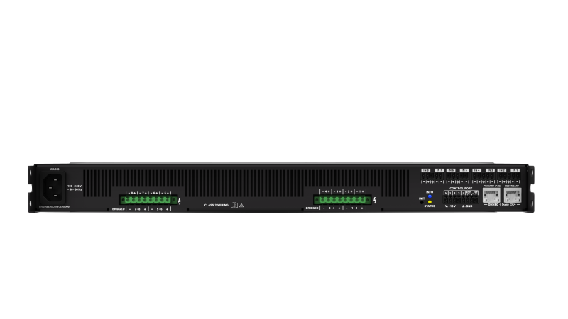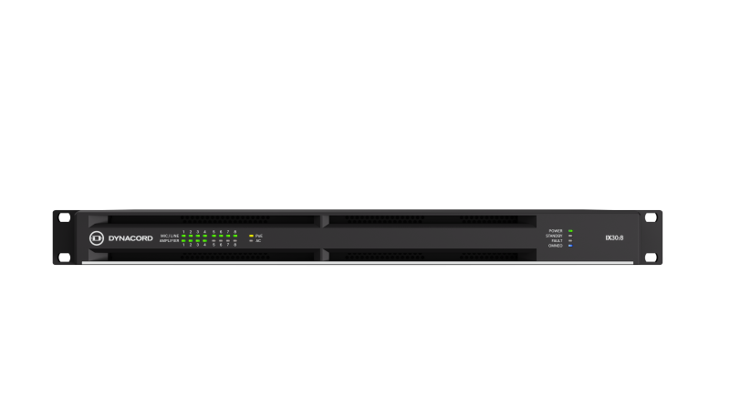 The IX30:8 is an 8-channel networked DSP amplifier with 3 kW total output power. Capable of driving Hi-Z or Lo-Z loads with powerTANK technology, the IX30:8 is ideal for a wide range of applications including sports venues, houses of worship, live performance spaces and hospitality.