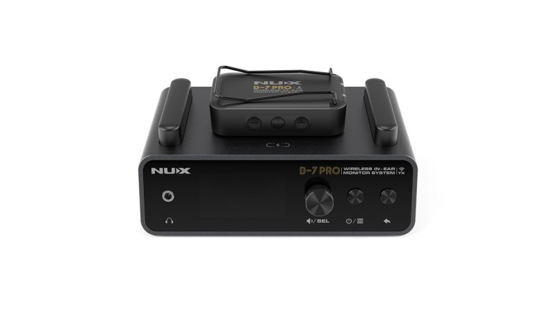 The B-7 Pro Stereo Wireless In-Ear Monitor System is a professional-grade wirelss solution from NUX's Pro Series, designed for connecting to the Aux output or main output of a mixer or audio interface, or to the headphone output of a multi-channel digital personal mier used in live performances. It enables stereo wireless monitoring, making it ideal for bands or solo performers during rehearsals, live shows, and live streaming for monitoring purposes.
