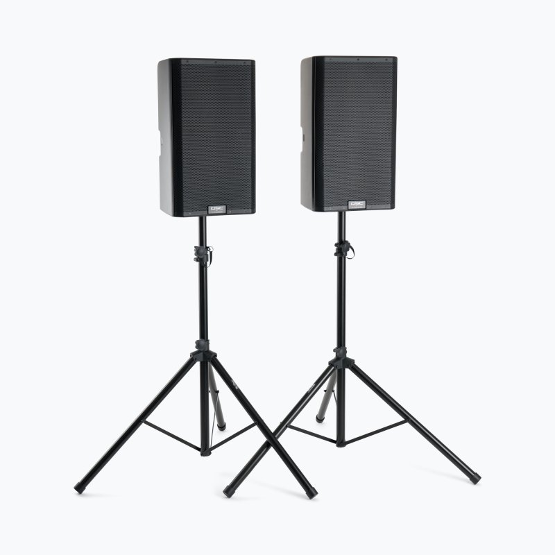 The SSP7650 Speaker Stand Pack with Bag comes with everything you need to support two speakers on separate stands. Each stand features a speaker pole compatible with a wide range of PA loudspeakers that have a 1 3/8" mounting socket. With the use of a speaker-pole adapter sleeve (sold separately), any speaker with a 1 1/2" socket can also be mounted. The stand height adjusts, enabling precise speaker placement and sound direction, and the height settings lock to ensure reliable support. Heavy-duty construction, braced bases, and nonslip feet work together to deliver outstanding stability and load balance. With its durable black finish, this stand adds to the professional appearance of any space. For convenient, compact storage and transportation, the base legs fold down flat and the included nylon carry bag with a shoulder strap and zipper closure makes it simple and easy to load in, set up, tear down, and load out.