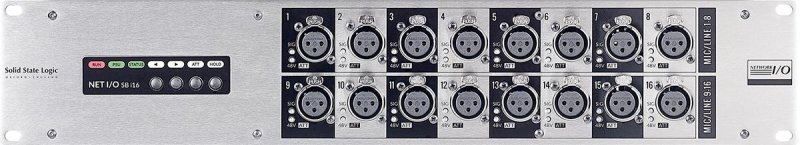 This 2RU unit offers sixteen mic/line inputs and eight line level outputs. It also features a pair of redundant RJ45 Dante network connections, a pair of network extension connections, GPIO connectivity and redundant PSU’s.